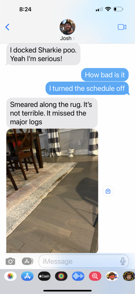 However, if you have dogs, make sure Sharkie Poo runs with supervision cause you never know what extra nuggets are waiting around to be vacuumed up. Before you know it, the 10 minutes you saved just turned into hours cleaning your carpet and hosing down Sharkie Poo.